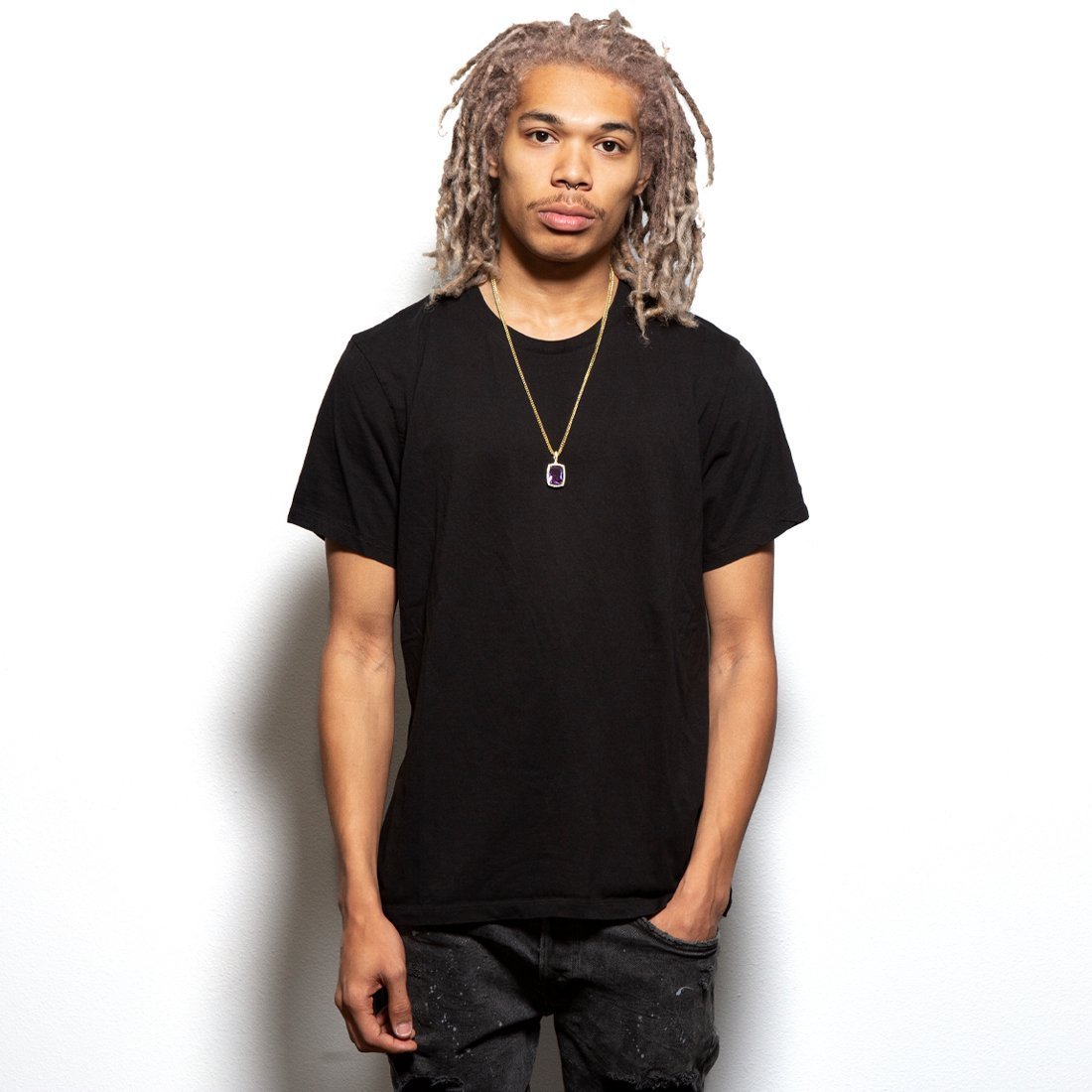 From England to China, each monarch and dynasty used a royal jewel to decorate some of their most prized possessions that included swords, crowns, specters and orbs. Now, you can decorate your wardrobe with the 14K Gold Amethyst Crown Julz Necklace from King Ice. Each purple CZ stone provides an elegantly cut  piece that comes surrounded by clear CZ stones, while the 14K gold plating add value and shine to this pendant. Meanwhile, the Greek key design around the piece matches perfectly with a 20", 2.5mm stainless steel Franco chain each pendant includes.