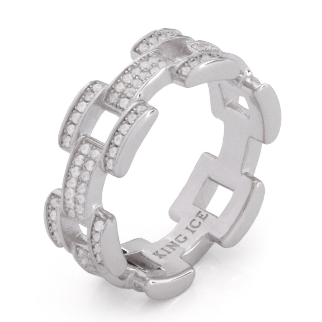 The .925 Sterling Silver Link Ring redefines the traditional look of a ring. Made from .925 Sterling Silver, lined with VVS Diamond Simulate stones, and available in 14K gold plating, white gold plating, or rose gold plating. Each ring matches perfectly alongside each Link Bracelet.